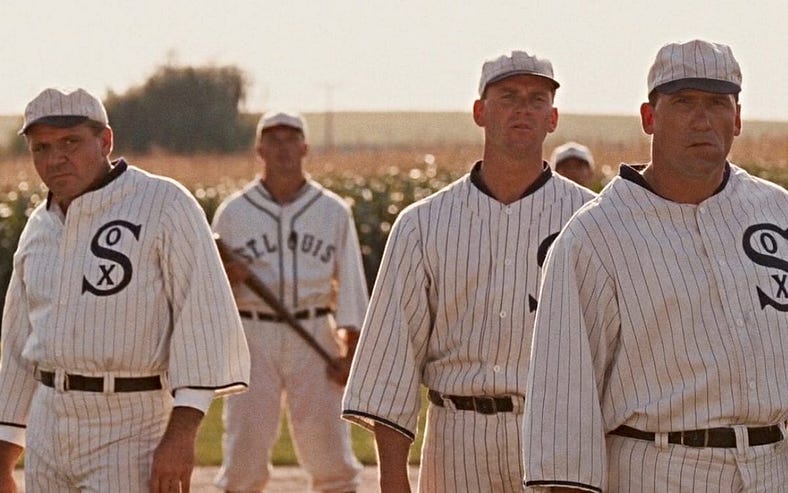 First, several twists and turns feed into the film’s themes of regret and redemption. For instance, at one point in the film, Ray hears a voice urging him to “Ease his pain.” As the story unfolds, we realize this pain is not just Shoeless Joe Jackson’s but Ray’s unresolved issues with his father.